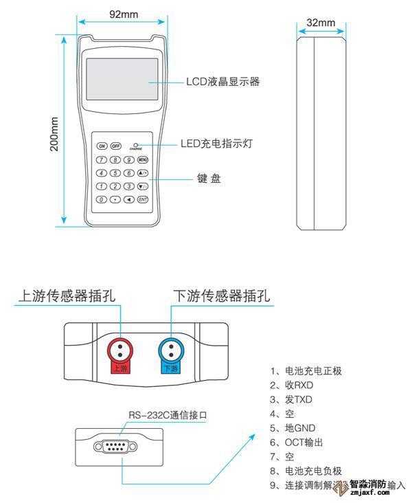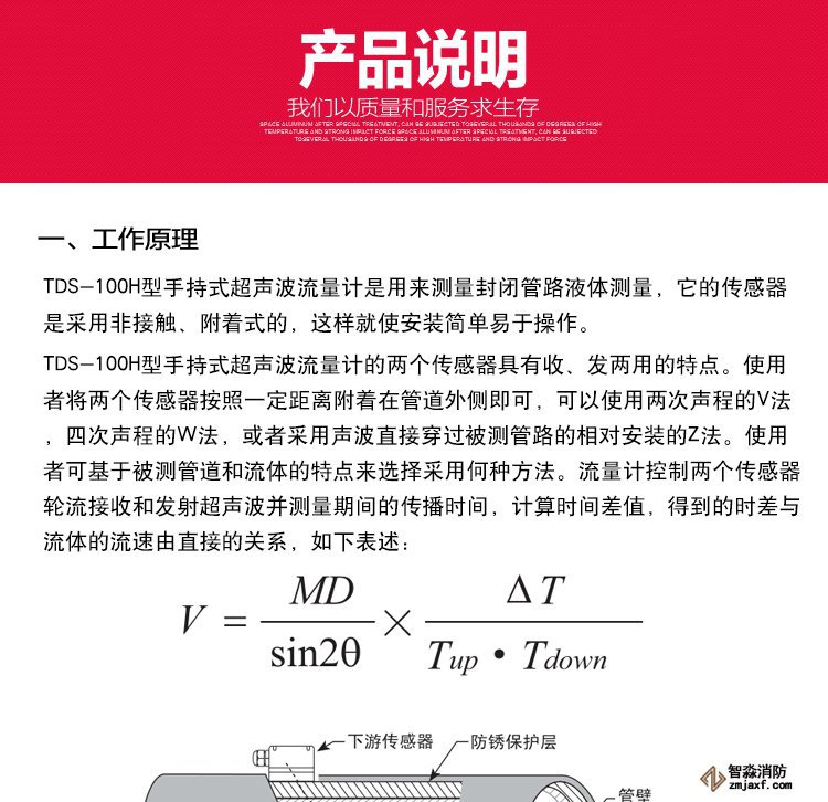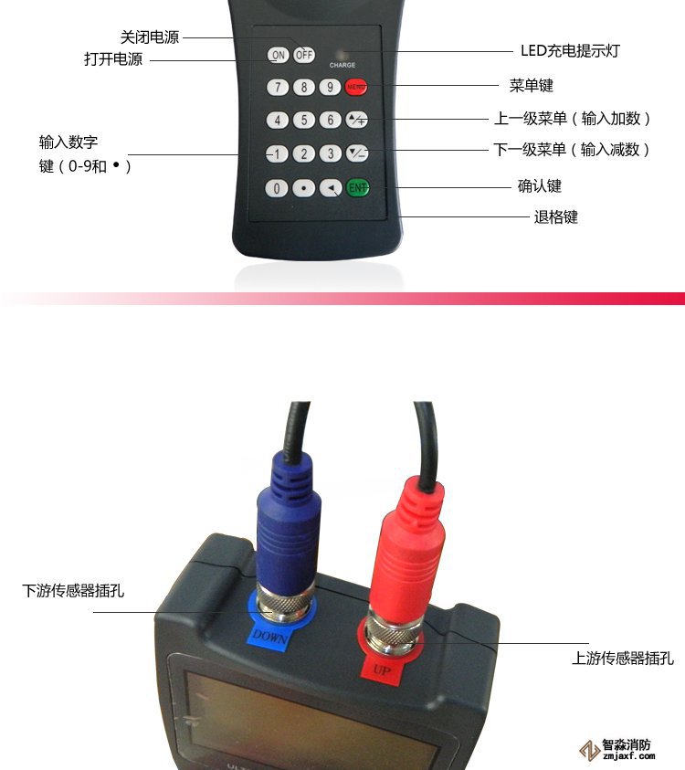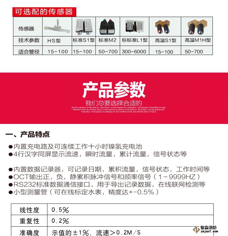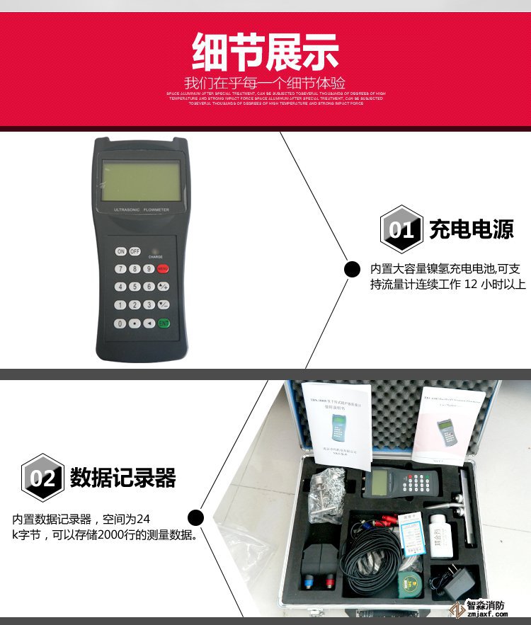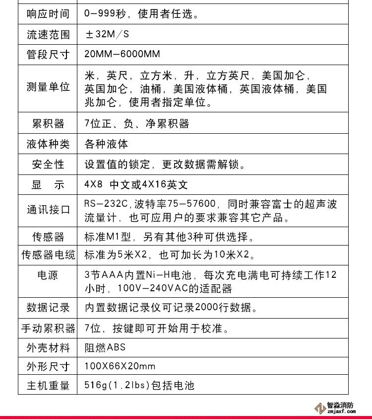 超聲波流量計測量管徑范圍:0mm~300mm;精度:1%用于檢測消火栓系統和水噴淋系統的給水量以及消防豎管的流量分配。